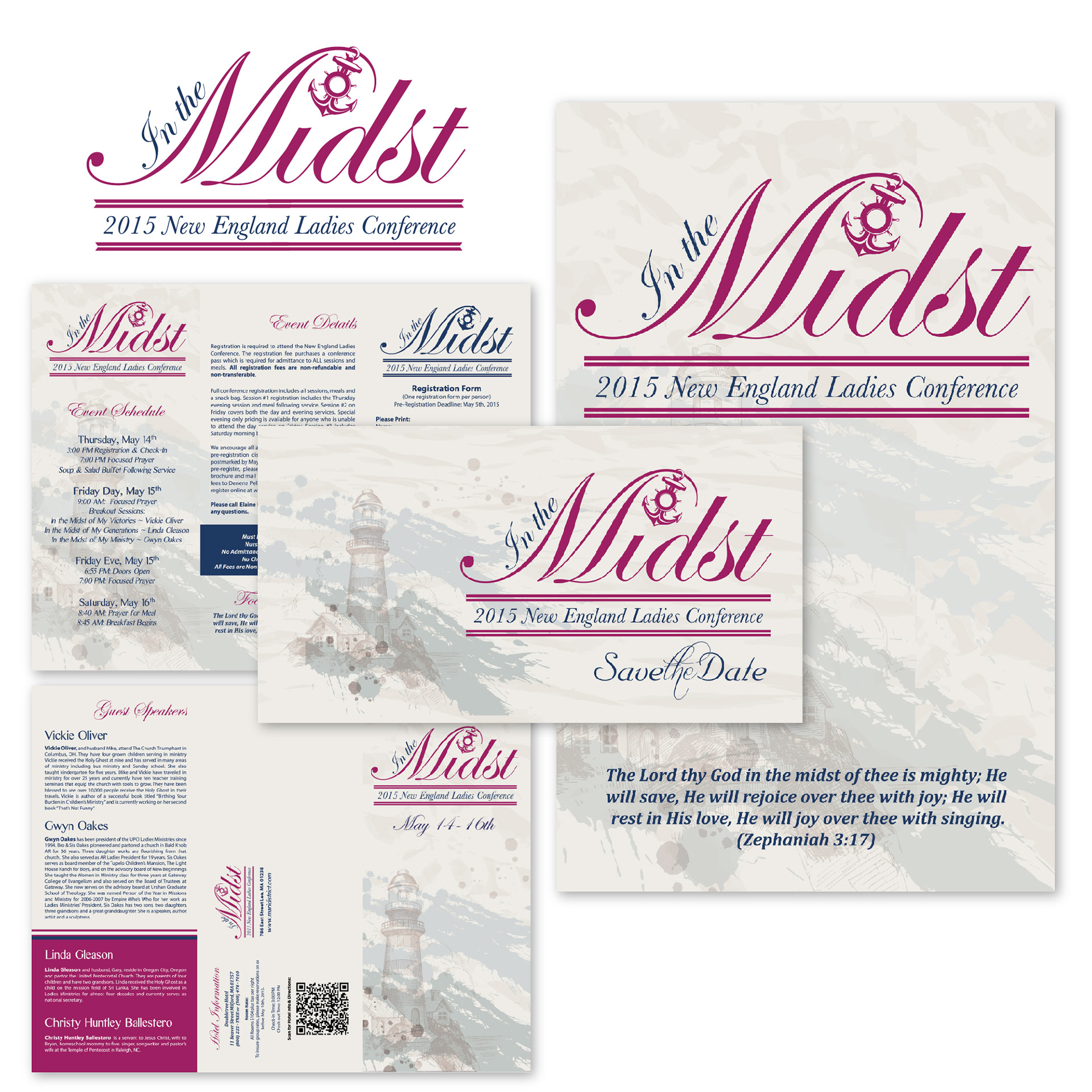 NELC Ladies Conference Collateral: Registration Brochure, Save the Date Postcard, and Banner